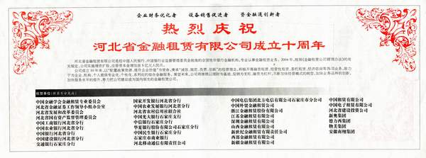 熱烈慶祝河北金租成立10周年