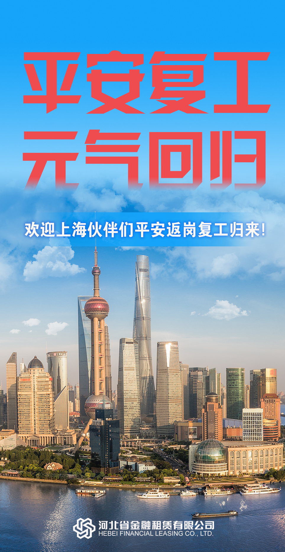 初夏降臨,上海于6月1日迎來(lái)有序復(fù)工復(fù)產(chǎn)復(fù)市。 兩個(gè)多月來(lái),上海區(qū)域的河北金租人嚴(yán)格做好疫情防控,居家完成工作任務(wù),穩(wěn)定提供金融服務(wù)。 今天,歡迎大家平安歸來(lái),重新投入業(yè)務(wù)一線(xiàn)! …