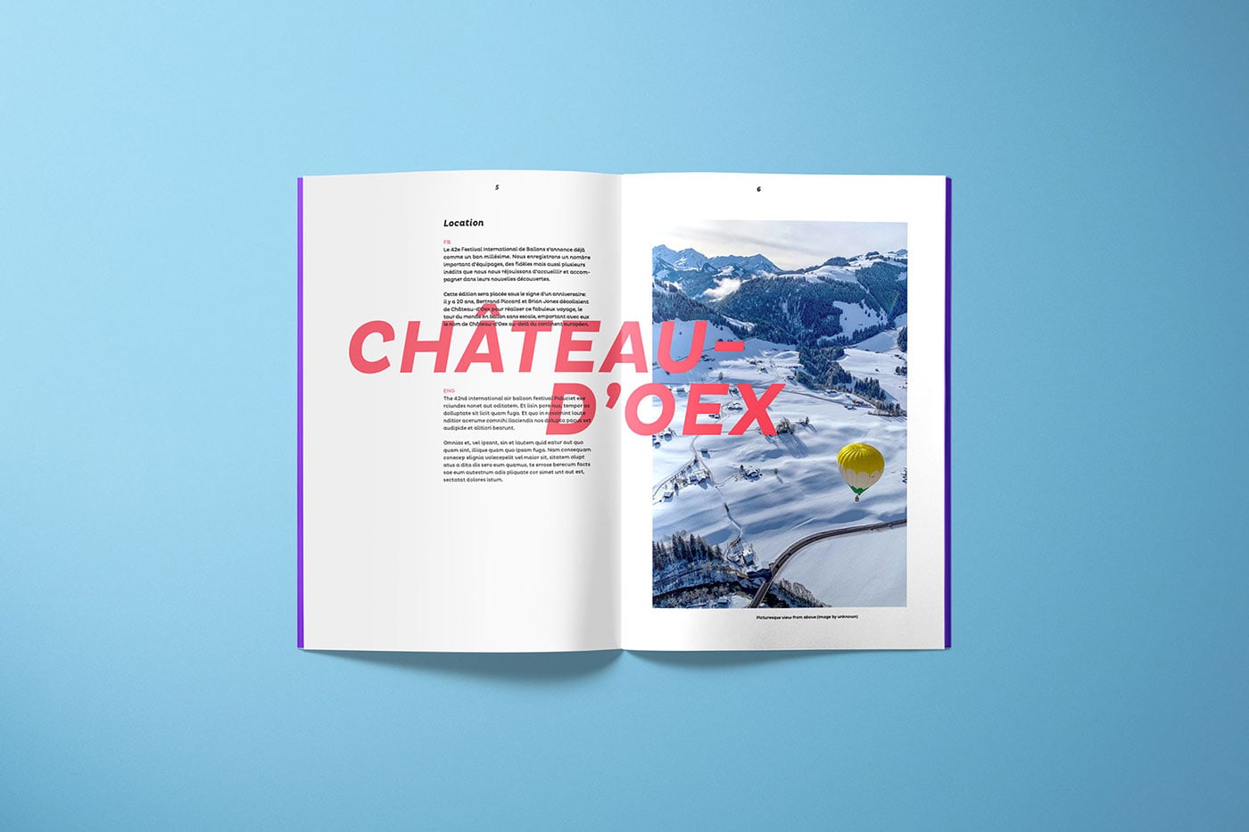 目前的品牌設(shè)計(jì)缺乏一致性,依附于旅游品牌Chateau-d’oex。Simona Cellar設(shè)計(jì)了一個(gè)獨(dú)立品牌標(biāo)識,logo可以作為圖形元素,也可以與圖像結(jié)合使用,logo就象正在飛行的熱氣球。藍(lán)色代表冬季的風(fēng)光,紅色代表瑞士的氣息,而紫色代表對世界的探索。